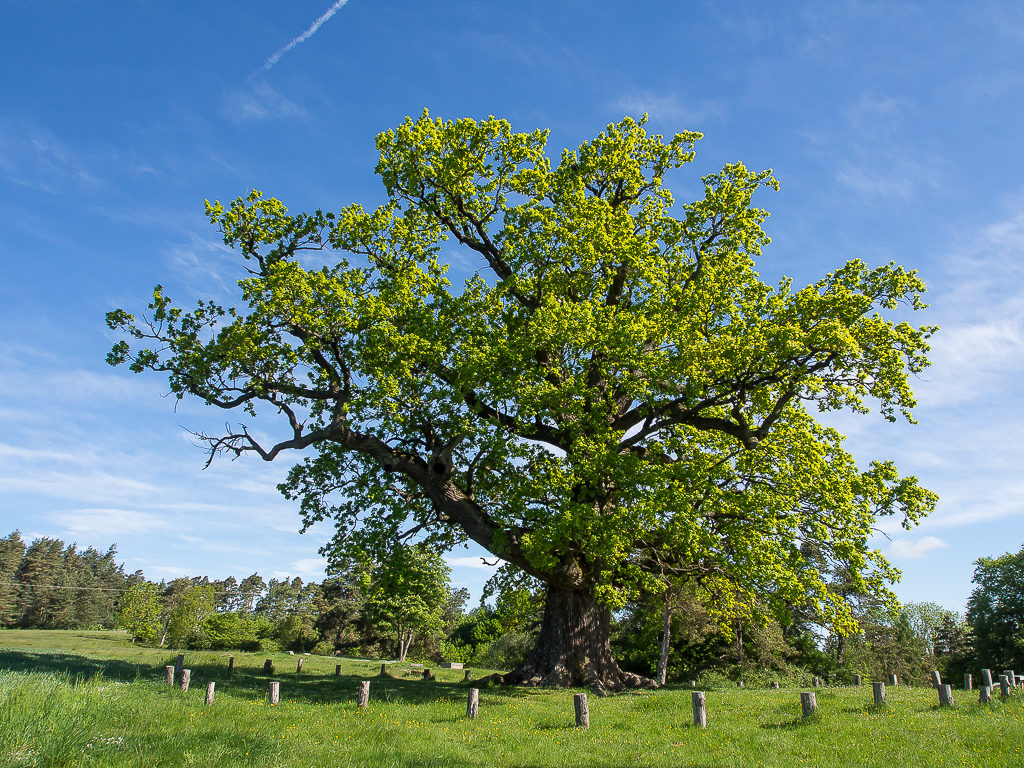 Die ausladenden Äste überlebten noch bis in die 50er bevor der große Ast in der Mitte ausbrach. Um den Rest des Baumes vor diesem Schicksal zu bewahren kürzte man die Äste massiv ein. Alle Starkäste in der Krone wurden auf einen Zugast, auf einen Astreiter abgeleitet. Warum man hier nicht den Weg gewählt hat die Äste zu stützen oder zu verspannen erschließt sich mir nicht. Die markante Kreuzform ist so auch vorausschauendes Menschenwerk. 39m Kronendurchmesser – das ist mehr als die Lenzeiche heute hat, wobei diese um einige Meter eingekürzt wurde und eine perfekte Rundheit aufweist. Wie man aus den Aufzeichnungen aus dem Jahr 1902 ableiten kann wächst die Kreuzeiche nur sehr langsam. Das langsame Wachstum könnte sowohl an der Wasserzufuhr und dem nährstoffarmen Boden am Standort liegen. Unter Berücksichtigung der langsamen Wachstumsverhältnisse kann man auf ein Alter von 500 Jahre zurückschließen.